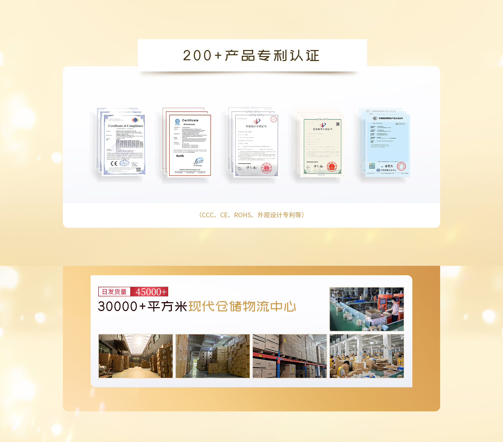 集团总部位于广州市,依托强大的研发和生产实力,我们已经获得200多项专利,工厂已获得BSCI、ISO、FAMA等认证,产品拥有CCC/CE/FCC/RoHS等报告和认证。多款单品的销量超100万+,畅销50多个国家,全球累计销量3000万+只,稳居天猫小夜灯类目TOP1、礼品类目TOP2。